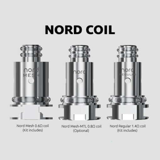 – Nord 0.6Ω Dual Coil (เหมาะกับน้ำยาซอลนิค Salt Nic) กำลังไฟที่แนะนำ 20W เป็นเบอร์มาตรฐาน